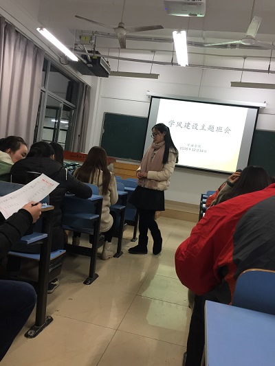 12月14日,我院2014级学风建设主题班会与考前辅导在翡翠湖校区八教303召开。活动由年级辅导员主持,年级全体学生参加了本次会议。