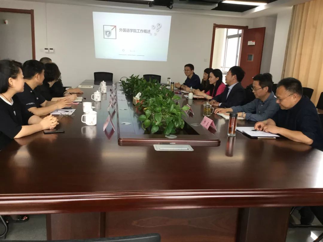 2019年4月26日,新疆农业大学外语学院马琴院长携黄川副院长(援疆干部),新疆维吾尔自治区高校外语教学研究会会长徐世昌教授,大外部王婷主任,英语专业唐彬主任来到我校翡翠湖校区72886必赢欢迎光临进行调研,座谈,参加会议的有韩江洪院长、胡丹书记、杨勇副院长、唐军副院长,英专陈曦主任以及刚援疆回来的大外部胡安琳主任。首先韩江洪院长介绍了学院的基本情况,随后对英语专业“以能力为导向的”人才培养模式、大学英语教学研究、研究生培养、师资队伍建设以及学术研究等方面的成功经验做了交流发言,双方就教学、科研的相关问题也进行了探讨,随后,考察成员参观了外语学院同声传译实训室、 各系部教研室、党建活动室、以及心理咨询室等。最后,双方代表希望今后在大学英语教学改革、专业建设、党建工作等各个方面能有更加深入的交流和合作。