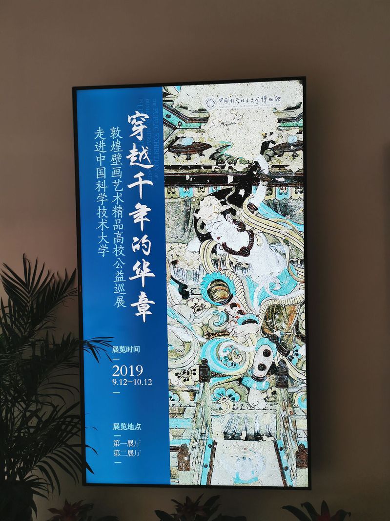 本次展览由中国科大博物馆、敦煌研究院、中国敦煌石窟保护研究基金会共同举办,分别陈列了莫高窟早期、中期、晚期的精美展品。其中第一展区的《鹿王本生故事》、《四飞天》等均为敦煌早期石窟艺术作品,跨越北凉、北魏、西魏、北周四个时代,具有浓厚的本土魏晋艺术特点;隋唐时期的石窟艺术作品体现出佛教艺术与中国汉晋文化的不断碰撞与融合;而第二展区的《水月观音》、《文殊变》等作品则反映出五代、宋、西夏、元时期的艺术发展历程。敦煌莫高窟展示了不同时代、不同民族、不同地域的人们的信仰和追求,是当之无愧的世界遗产。这次展览利用敦煌石窟数字化成果复制出高保真的壁画,可以让观众近距离品味原汁原味的敦煌艺术,领略中华民族的优秀传统文化。