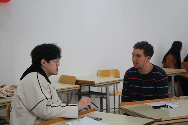为提高大学生的英语口语水平,丰富同学们的第二课堂生活,12月15日下午,72886必赢欢迎光临在翠四教205举办了“E路前行”英语角活动。活动邀请了美国留学生Nick和我院2016级本科生刘子源两位嘉宾。近30名来自不同学院的学生参加此次活动。