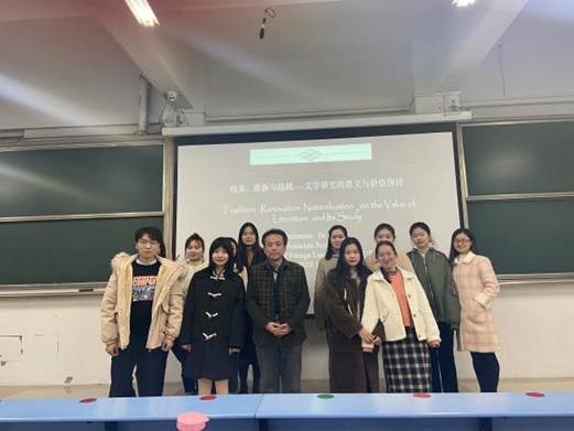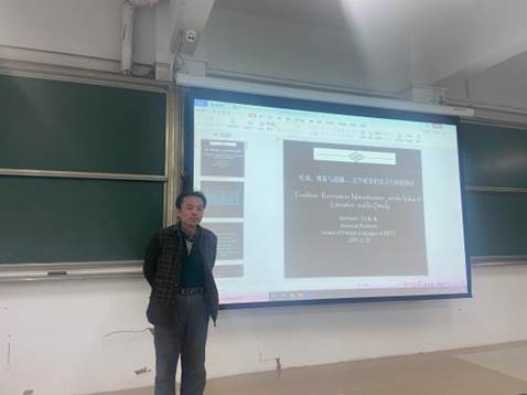 报告主题为“传承、维新与超越——文学研究的意义与价值的探讨”。首先,张博士从多个方面探讨文学意义和价值,对文学研究和文学中的经典与正典进行了区分。其次,通过一系列文人作者以及文学作品的列举与分析,张博士更加清晰地向同学们介绍了文学意义与价值。同时,针对当下存在的一些抨击文学研究的看法,张博士也指出,文学不是大家传统意义上的感性学科,其内部本身是有着逻辑体系的。最后,张博士还就自己喜欢的作者与作品和同学们进行了分享,希望同学们在日常生活中保持对文学的热情与活力。