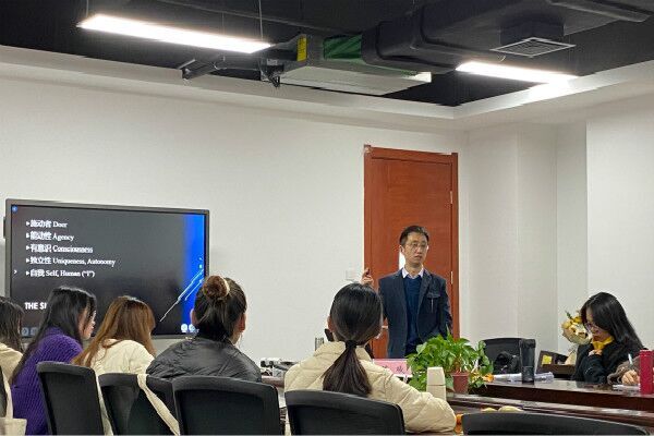 交流会伊始,陈曦老师以一段幽默的短片作为开场引入此次讲座的主题,拉近了与同学们的距离。随后,陈曦老师以时间为脉络,介绍了从古代到现代的哲学家,如雪莱,弗洛伊德,拉康,马克思等著名哲学家。通过了解这些哲学家关于主体性的思想,在场同学对主体性思想的发展脉络更加清晰。陈曦老师劝诫同学们,对真理的追求是永无止境的,每一个个体对自己的定义也永远在路上。然后,基于主题“族裔”,陈曦老师选取了一个典型的剧本为实例,并对剧本进行了深入浅出的讲解,让同学们对族裔问题有了更深刻的理解。