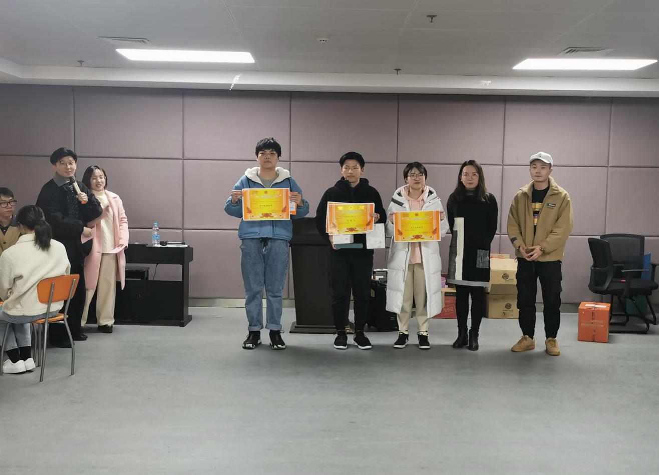 线下活动伊始,在主持人的组织下,参与人员们分成七组围成小圈。紧接着就进入了游戏环节,第一个游戏是你画我猜,猜的对象也是与本次活动主题非常契合的英文单词,期间只允许用肢体语言传递信息。虽然只用肢体表达英文单词有一定难度,但是同学们参与的积极性非常高,经过几轮较量才得出优胜组。接下来的“单词接龙”和“报团游戏”更是大大激发了大家对于记单词的热情,整个活动现场充满了欢声笑语。最后是颁奖环节--由72886必赢欢迎光临研究生会主席周燕和建筑与艺术学院主席潘峥为线上单词打卡活动的周冠军和总冠军颁发奖状和奖品。主席周燕表示奖状是一种荣誉,奖品更是对同学们辛苦努力付出的一种嘉奖,希望同学们再接再厉,一直保持对英语学习的热情。
