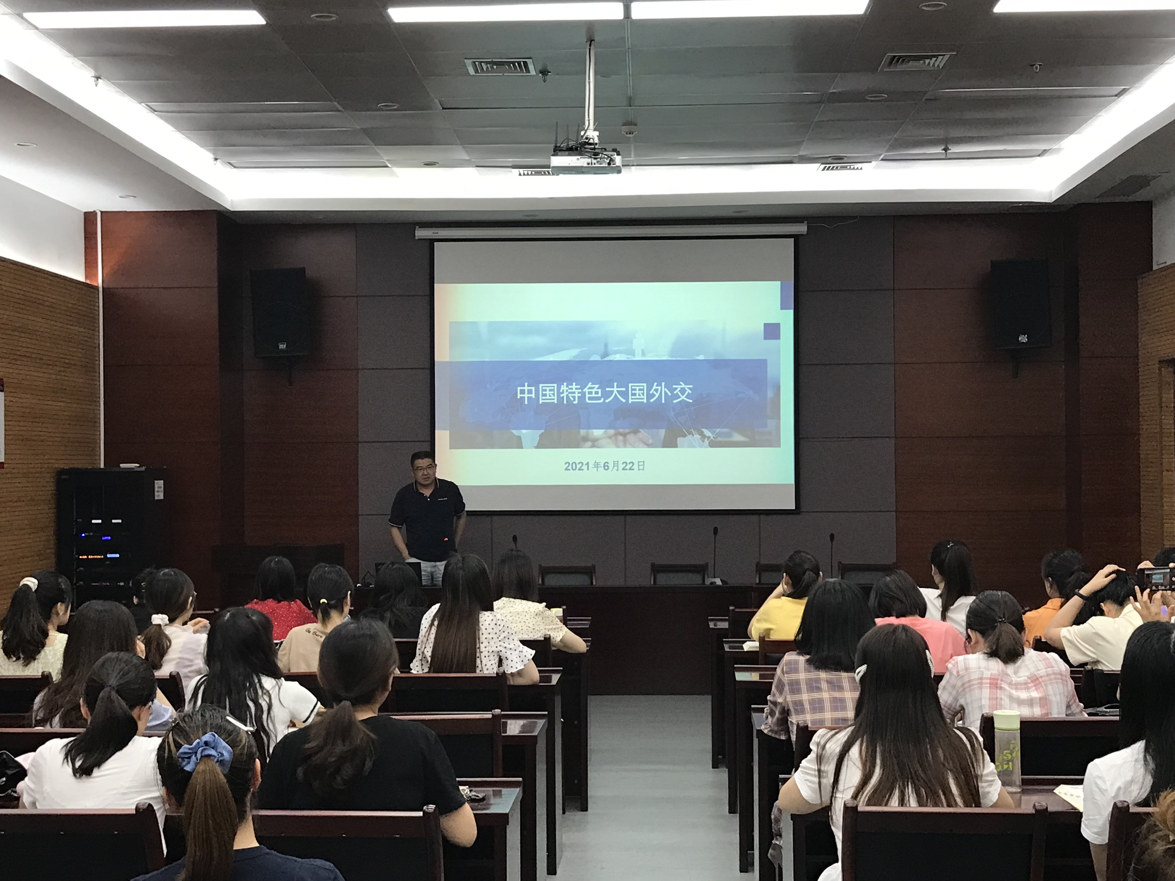 2021年6月22日下午,72886必赢欢迎光临院长张四红以“中国特色大国外交”为题,在科教楼第五会议室为全体研究生讲授党史学习教育专题党课。