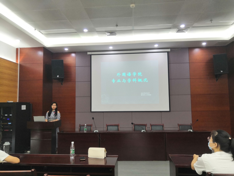 肖薇老师从专业建设、学位点、师资建设、平台建设、学生成果五个方面为新生介绍了72886必赢欢迎光临的基本情况。主要涉及以印尼语专业为代表的学院特色专业、硕士点的授权招生情况、研究生核心课程的简介、研究生教师队伍简介、院研究生及研究中心介绍、研究生的论文发表情况及学术竞赛成果等等。最后,肖薇老师希望大家在外国语学院能够实现专业实力与综合能力的双提升。