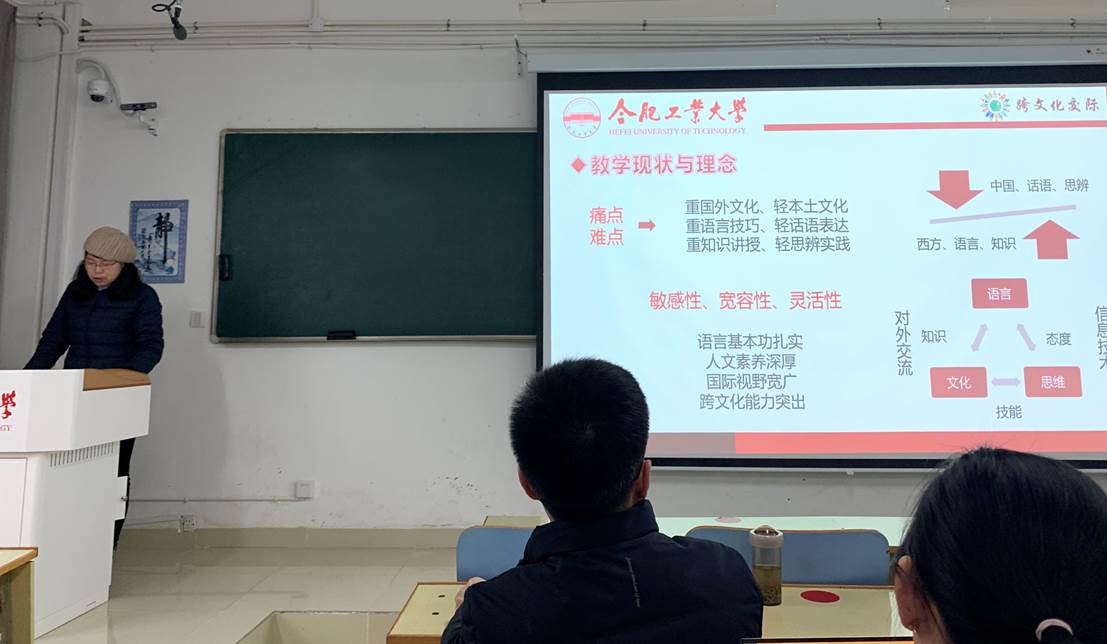 观摩会先由刘掬涟老师为大家生动形象地展示了其精心准备的研究生英语课程里面的学术会议这一单元,再是孙桂林老师就其丰富多彩的跨文化交际课程进行了详细地说课,内容详实,教学形式生动活泼。学院老师们积极参与了观摩,点评现场气氛热烈。