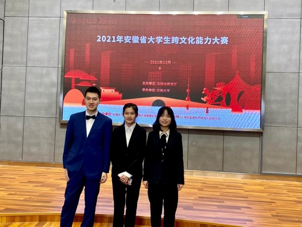 2021年12月19日,2021年安徽省大学生跨文化能力大赛以线上比赛的形式完美落幕。此次大赛中,共有来自安徽大学、安徽财经大学等33支省内高校代表队参加。我校团队克服疫情形势变化所带来的重重困难,最终在省赛中获得二等奖(全省第四名)的佳绩。团队成员分别是来自2019级国际经济与贸易专业的谢家鹏、2020级英语专业的陶园和2021级国际经济与贸易专业的姜宇琼。72886必赢欢迎光临教师刘丽、张和对学生进行了全方位的指导和培训。