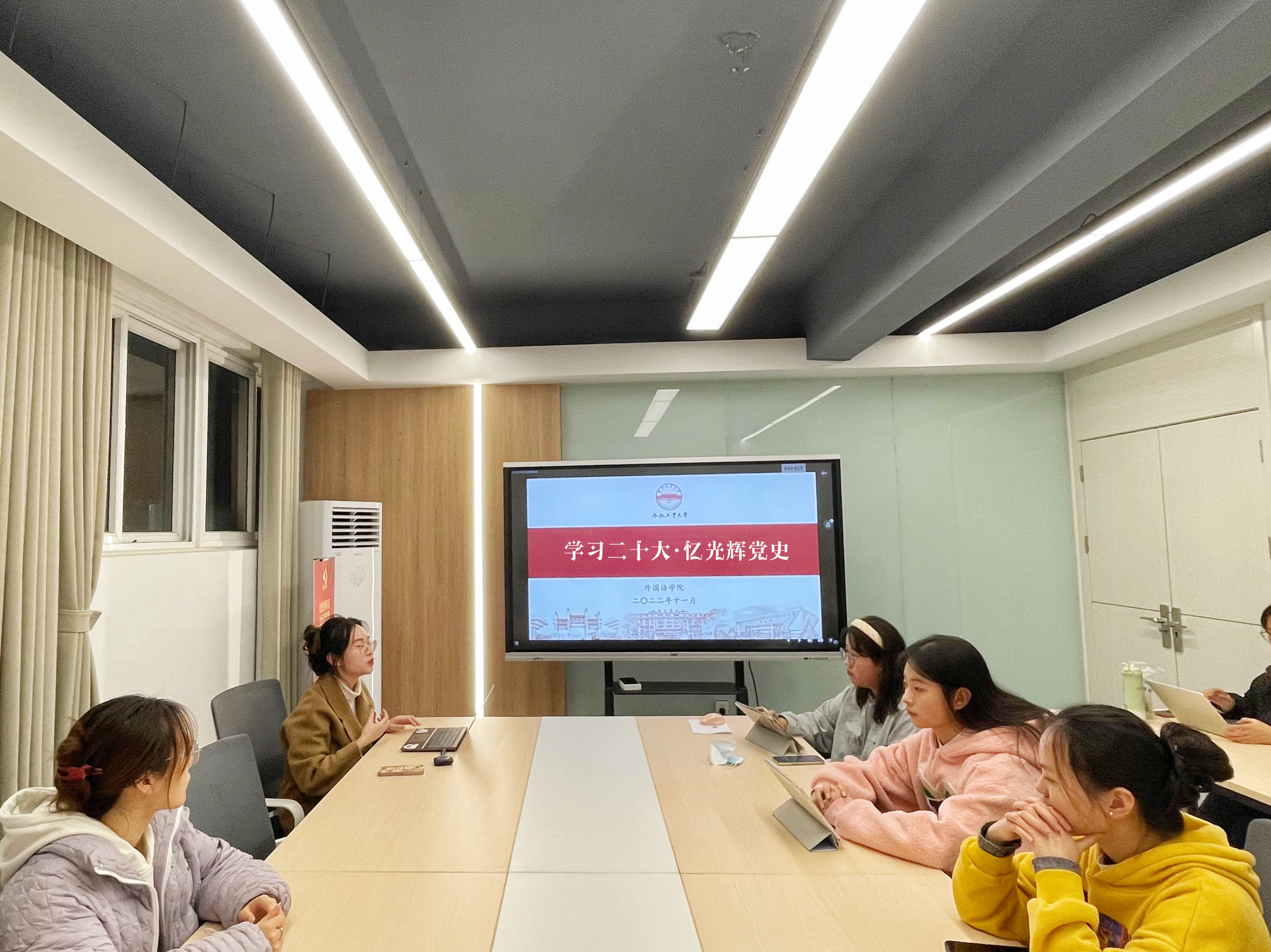 11月12日,为深入学习党的二十大精神,推动红色文化教育纵深发展,72886必赢欢迎光临组织党校第68期预备党员班、发展对象班全体学员开展“学习二十大·忆光辉党史”故事分享会。