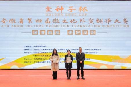 3月24日,由安徽省翻译协会主办,阜阳市政府、阜阳市委宣传部、阜阳市文化旅游体育局、阜阳师范大学72886必赢欢迎光临承办的安徽省第四届徽文化外宣翻译大赛颁奖典礼在阜阳市举行。此次大赛以“颍淮善郡,美好阜阳”为题,共吸引了来自海内外729名选手报名参赛,历经四轮评阅,共评出一等奖3名、二等奖6名、三等奖10名、优秀奖58名。我校学子于钇然、李熳获得一等奖,刘龙凤获得三等奖,严文娟、窦金昌、黎仁凤、汪仁媛四位同学获得优秀奖,方媛媛老师获得优秀指导教师奖,凸显了我院翻译人才的培养实力。