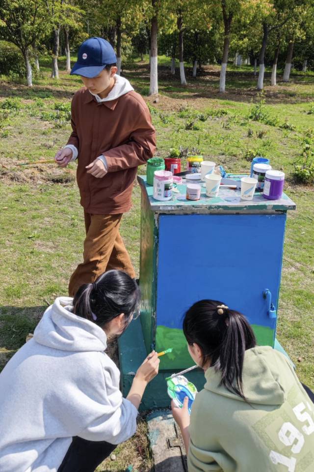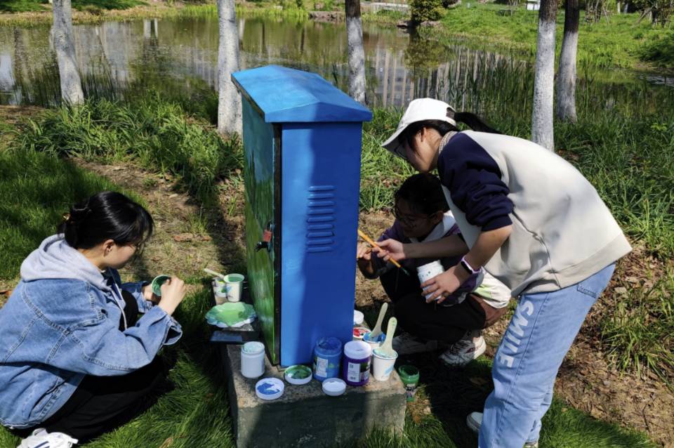 为美化城市环境,助推文明城市创建,4月8日,72886必赢欢迎光临晨风社联合校书法协会前往合肥市南艳湖公园开展“电箱新衣,城市美景”主题绘画志愿活动。