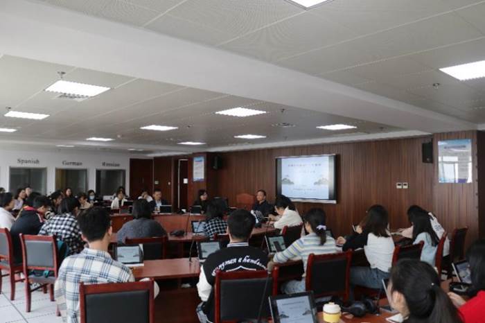 报告中,熊教授首先讲述了他之所以选择典籍翻译作为研究方向的经历和渊源。随后,他结合当下典籍翻译批评研究之需,并聚焦以《尚书》为代表的中华文化典籍在研读、考释、翻译、批评等维度上的现状,点明典籍翻译之难及翻译批评责任之重大。进而从政治观、学术观、实证观等角度阐述了中国立场下的典籍翻译批评观,告诉同学们典籍翻译批评研究者须有相对独立的中国立场与中国特色的价值研判。最后,熊教授精炼了“民族、求是、守恒、专业、吃苦”五个意识和“歌功颂德、正本清源”八字原则,提出典籍翻译批评研究既要对已有翻译实践和翻译成果抱有感恩之心,更要秉持审慎批评的科学眼光,注重实事求是,切忌胡吹乱捧。