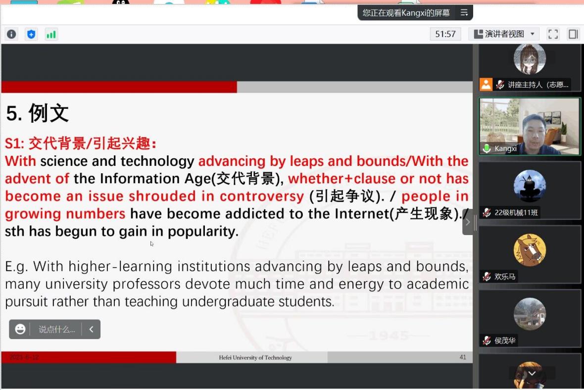 本次讲座是“语通中外”大学英语朋辈辅导学业帮扶品牌活动之一,旨在帮助广大学生提高英语水平,更好地备考。72886必赢欢迎光临将持续打造精品课程,努力构建朋辈引领、学业辅导、答疑解惑、动态跟踪为一体的朋辈辅导体系。