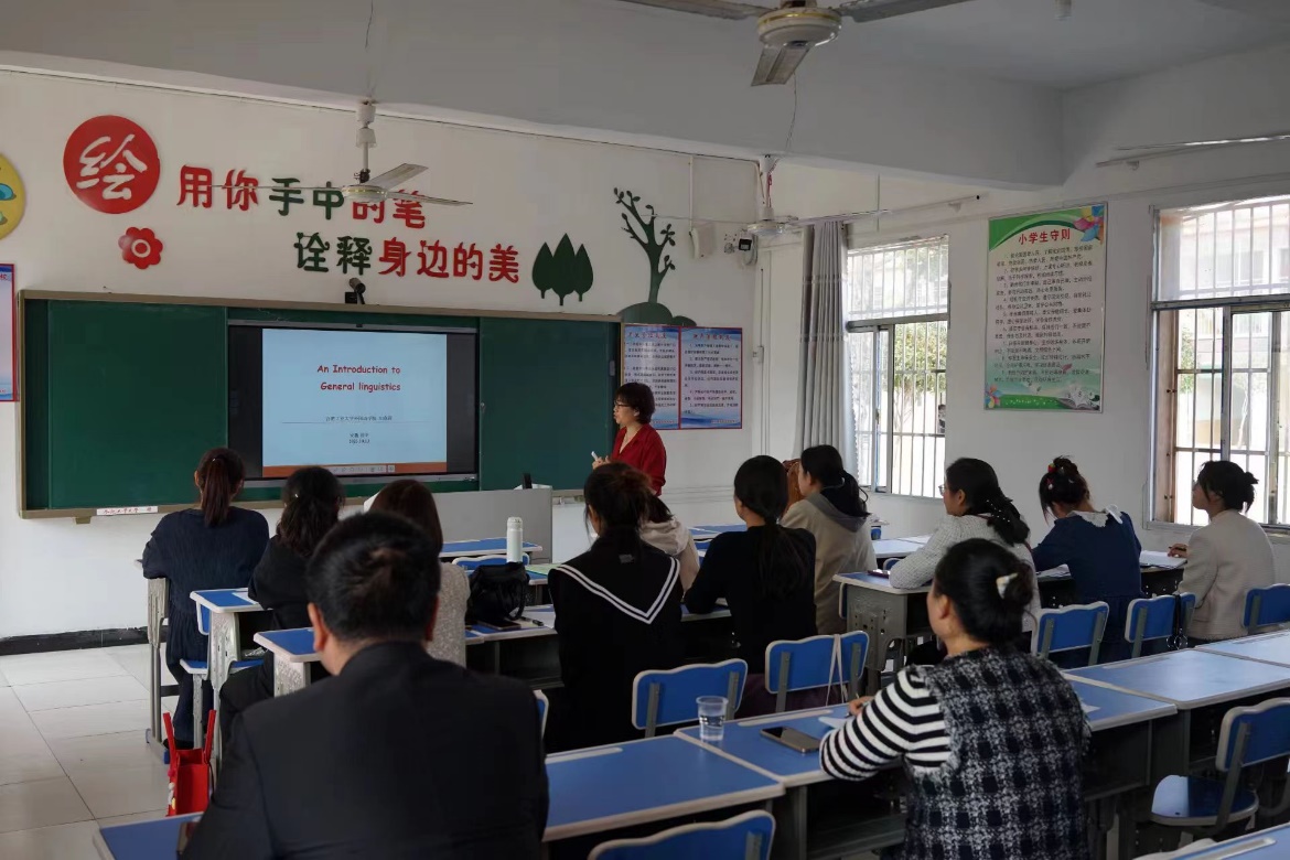 刘晓峰首先代表学院向20名品学兼优的小学生捐赠了学习用具,随后与蒯定、夏文杰、丰朝良等就党建、定点帮扶工作进行了深入交流。汪晓莉老师作了题为“英语语言学导论”的示范教学讲座,城北镇的相关英语教师参与听讲。