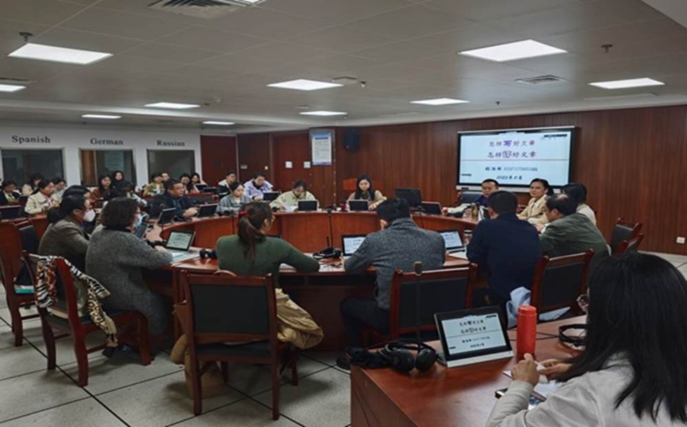 报告结束后,与会师生积极参与互动交流,就个人科研历程和发表经验提出问题并分享了自己的见解。胡作友教授与张教授就如何避免“一稿多投”和“多稿一投”进行了深入讨论;张结根老师、张浩老师、韦晴老师、李为山老师、郭小洁老师等也纷纷就论文选题的学术性与思想性、外语学科本位视角与跨学科视角下的科研撰写与发表等问题展开了热烈的交流。最后,张治栋教授鼓励72886必赢欢迎光临师生发挥自身学科优势,关注前沿热点,积极投身科学研究工作,提高科研产出显示度。