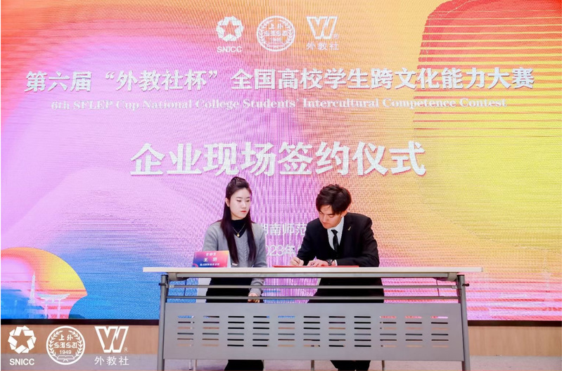 本届大赛期间还进行了一场特别活动-----大赛优秀选手与大型企业签约仪式。数家国际知名企业应邀亲临比赛现场,与参赛选手近距离交流,遴选优秀跨文化人才,双方达成意向即可现场签约。我校参赛团队成员艾力卡尔·艾司卡尔江在总决赛中表现出色,获得上汽集团的青睐,与上汽集团签署了合作意向书,体现了我校学子优秀的综合素质。