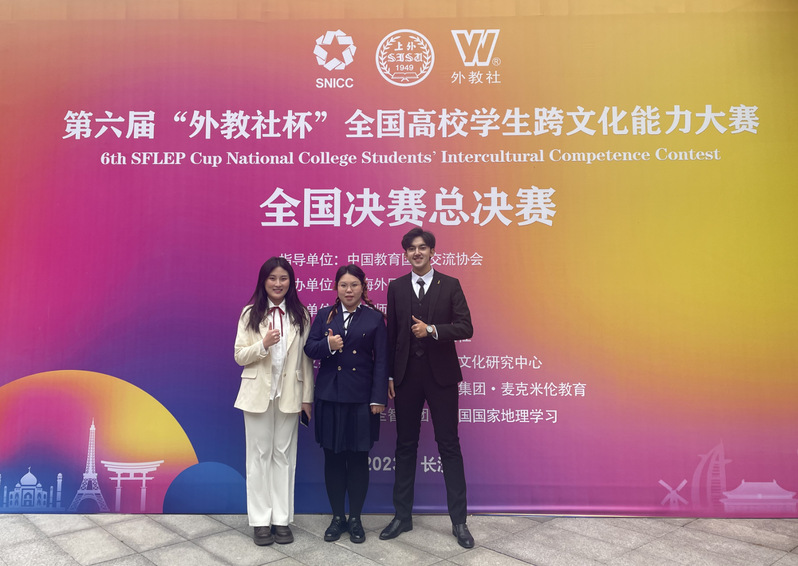2023年12月3日,历时三天的“外教社杯”全国高校学生跨文化能力大赛全国总决赛在湖南师范大学圆满落幕。作为外语类学科全国规模最大、参与师生人数最多、覆盖学校最广的权威赛事之一,共有52支中国学生队伍和20支国际学生队伍从全国23个省市的741所高校中脱颖而出,晋级全国决赛。我校团队以优异成绩荣获一等奖,团队成员分别是2021级英语专业的周程乐、2022级土木工程(工程管理)专业的艾力卡尔·艾司卡尔江和2023级国际经济与贸易专业的白若汐。72886必赢欢迎光临刘丽、张和、孙桂林老师全程对学生进行了悉心指导。