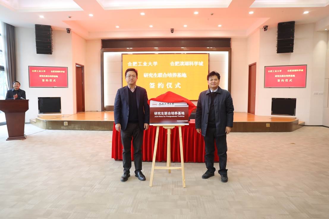 12月13日,我校与合肥滨湖科学城管理委员会(“滨湖科学城”)举行共建研究生联合培养基地授牌仪式。校党委常委、副校长汪萌和滨湖科学城管委会党工委委员、管委会常务副主任吴爱国共同为基地揭牌。