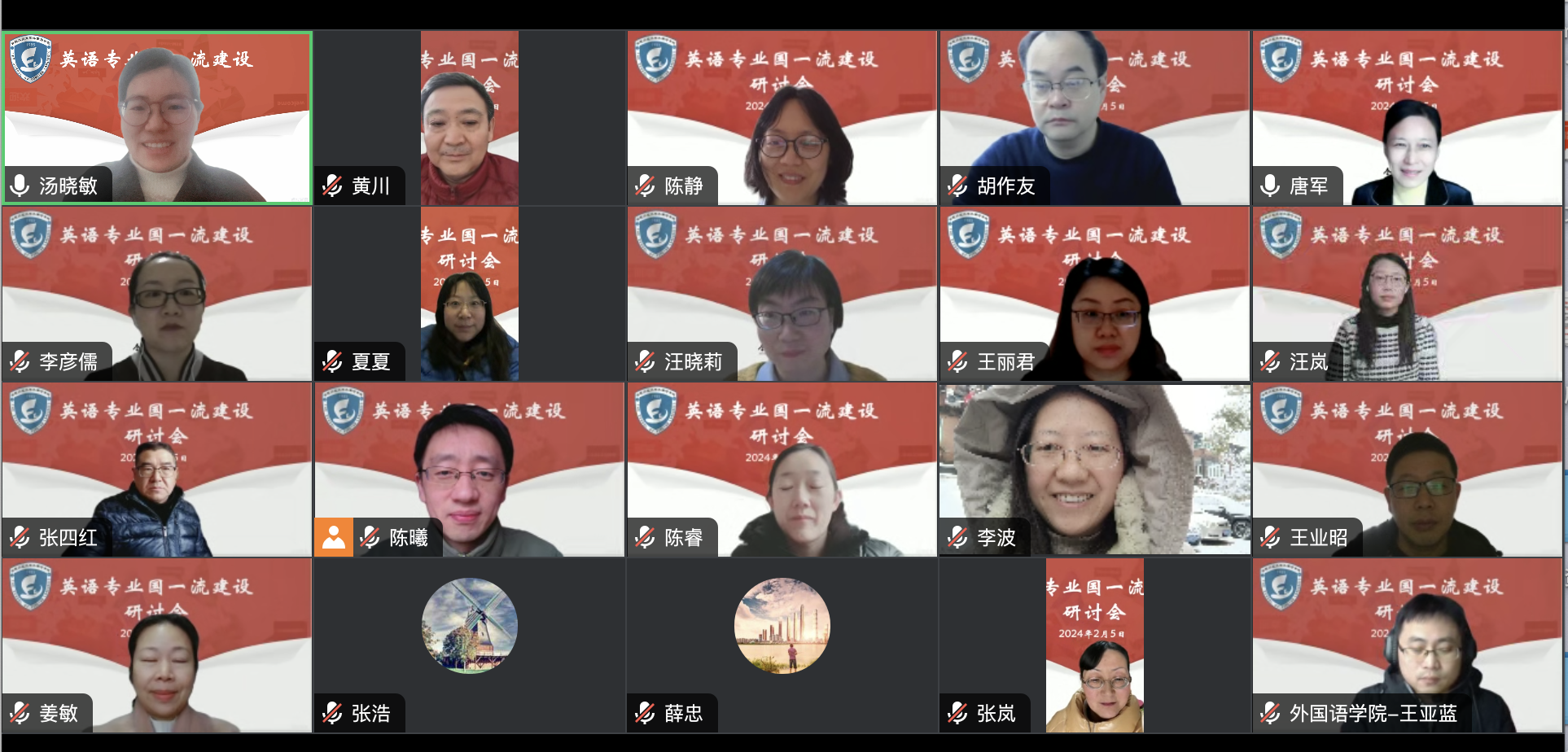202425日上午,学院举行英语专业“国一流”建设线上研讨会。院长唐军、副院长黄川、英语专业教研室全体教师参与此次研讨会。本次研讨会围绕英语专业获批“国一流”建设点以来专业建设已经取得的成果以及下一步建设方案展开研讨。