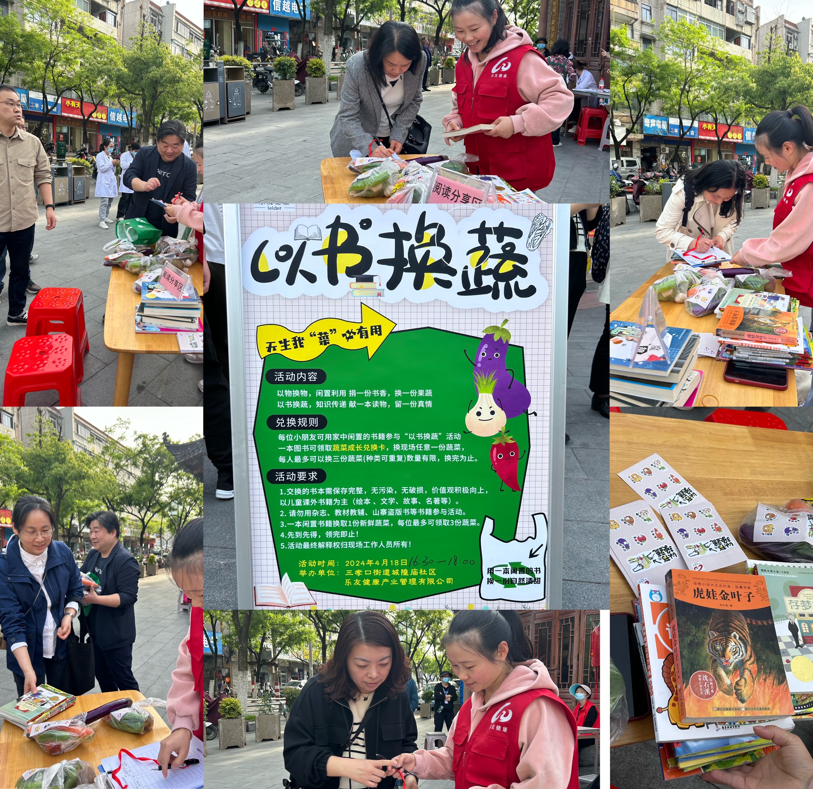 2024年4月18日下午,灿灿春日里,临近“世界读书日”,三孝口街道城隍庙社区关工委与妇联联合合肥乐友健康产业管理有限公司择机举办了“‘书’菜计划,以书换蔬”主题特色活动,旨在倡导全民阅读,丰富社区精神文化生活。