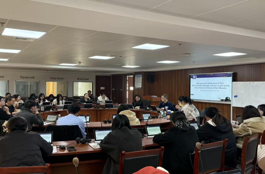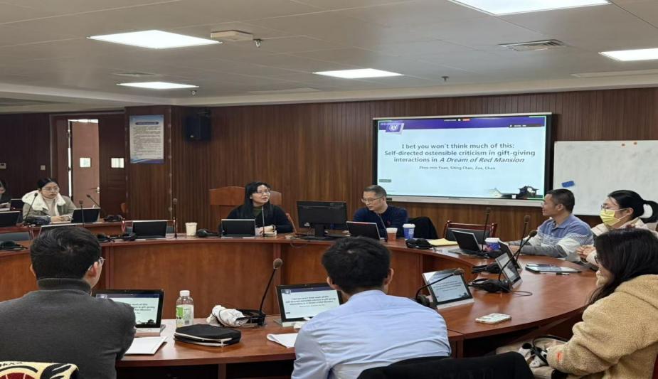 2025年11月26日下午,学院在翡翠湖校区科教楼A1203室举办了“2025年斛兵外语讲坛‘科研产出大家说’暨研究生交流年会第九场学术报告”。南京大学袁周敏教授应邀为学院师生作题为“I bet you won’t think much of this: Self-directed ostensible criticism in gift-giving interactions in A Dream of Red Mansion”的主旨报告。